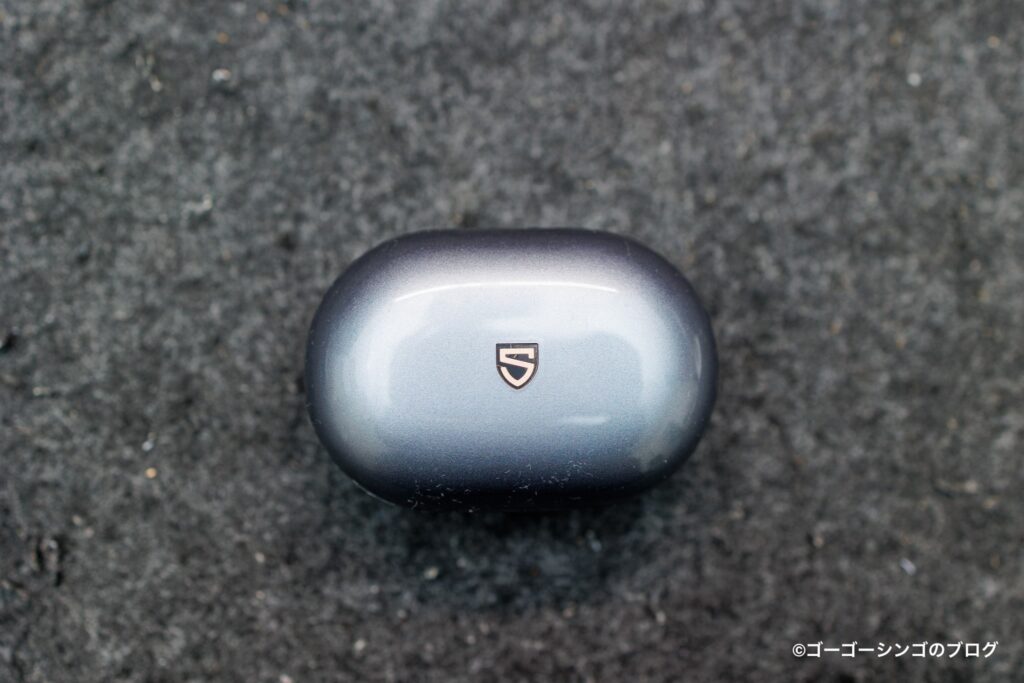 ケースの見た目はフェイクレザーのようなデザインで、安物イヤホンのケースにありがちなプラスティッキーなチープな見た目ではありません。