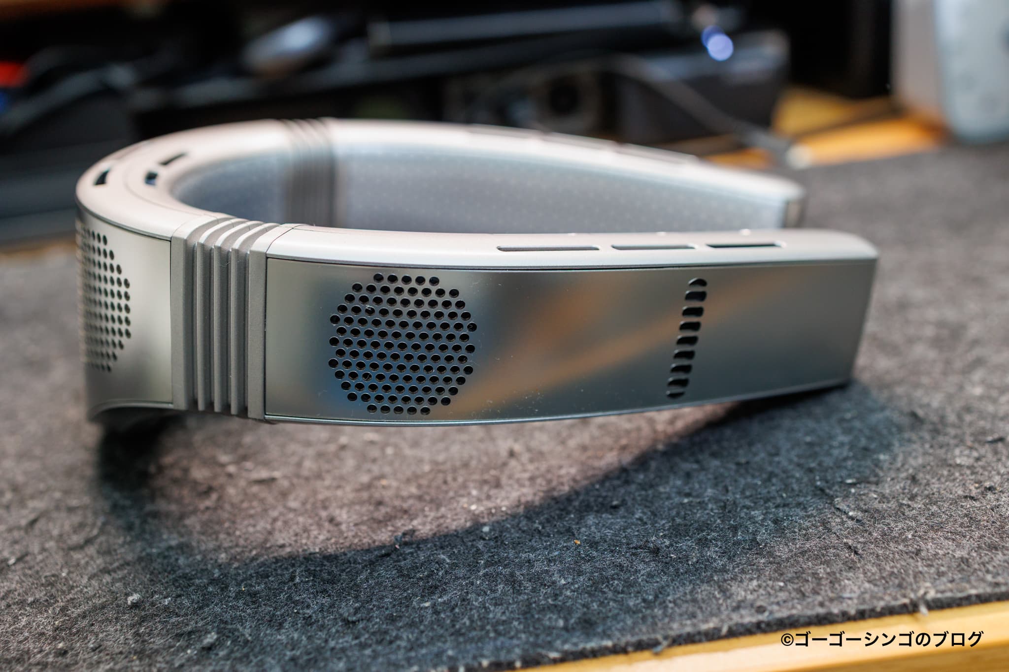 ネッククーラーの見た目はまるで未来のガジェットのようなスタイリッシュな見た目です。